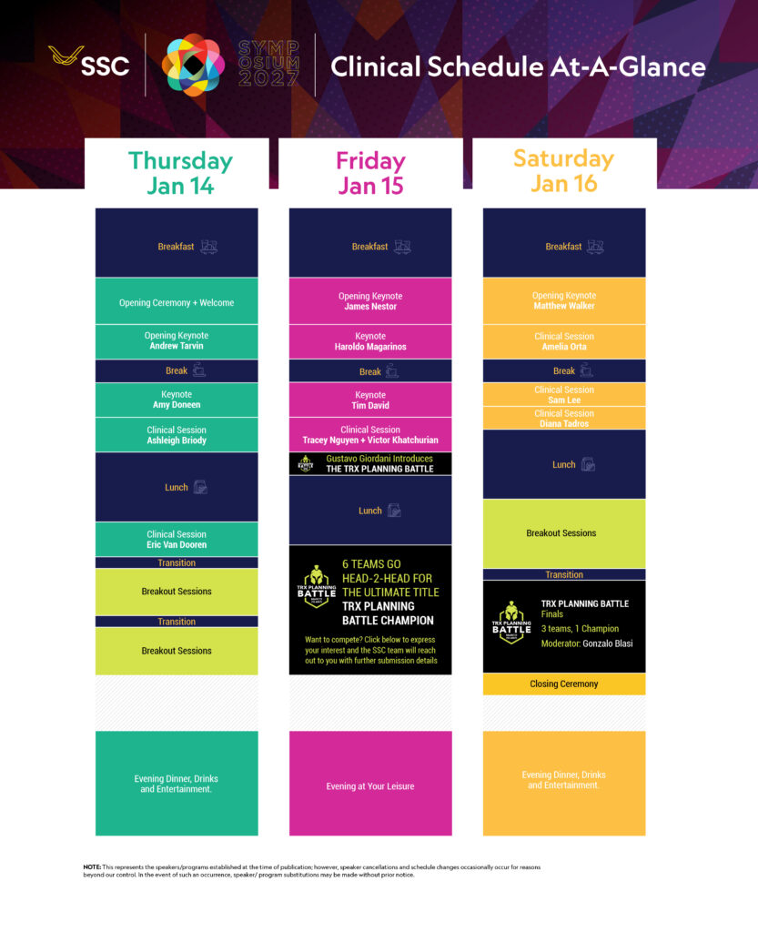 The day builds toward action with the introduction of the TRX Planning Battles, setting the stage for collaborative thinking, clinical strategy, and spirited competition. Friday is about recognizing patterns, strengthening connections, and preparing to bring clarity into complex decision-making.